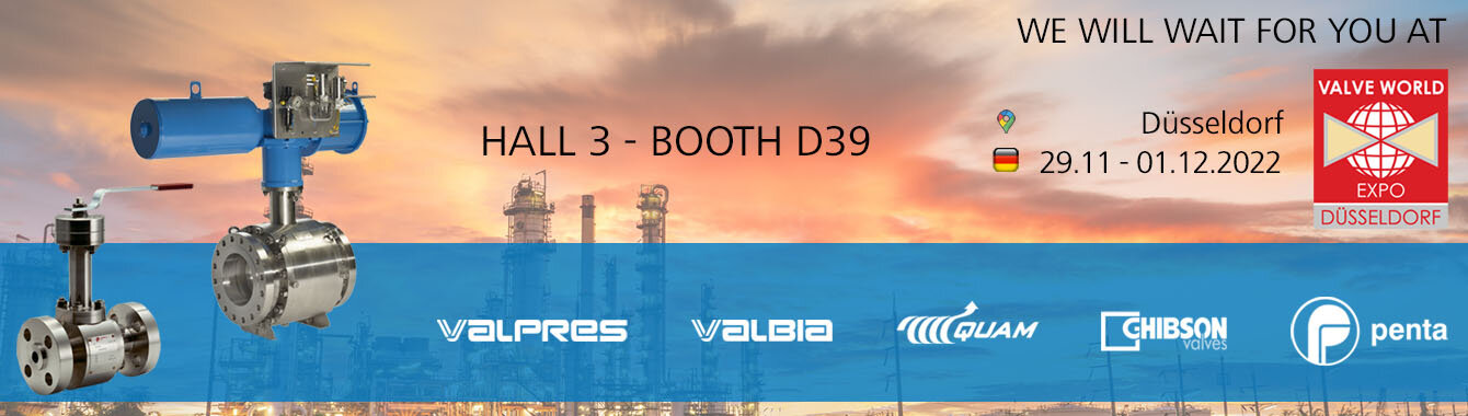 Valpres, Valbia, Penta, Quam e Ghibson saranno presenti alla fiera numero 1 per le valvole industriali in tutto il mondo. Piattaforma di innovazione e punto di incontro del settore dove scoprire le ultime tecnologie e stabilire contatti con fornitori e clienti competenti.