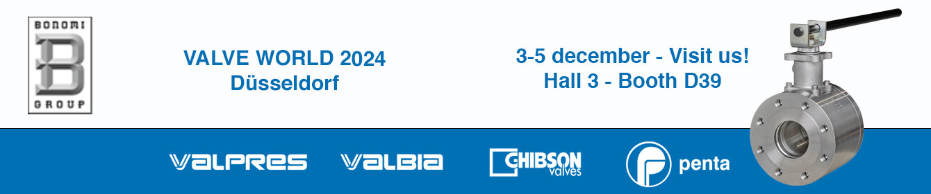 Bonomi Group, insieme alle aziende Valpres, Valbia, Penta, Ghibson e Quam, conferma la sua presenza a Valve World Expo dal 3 al 5 dicembre a Düsseldorf, l’evento internazionale di riferimento per il settore delle valvole industriali.